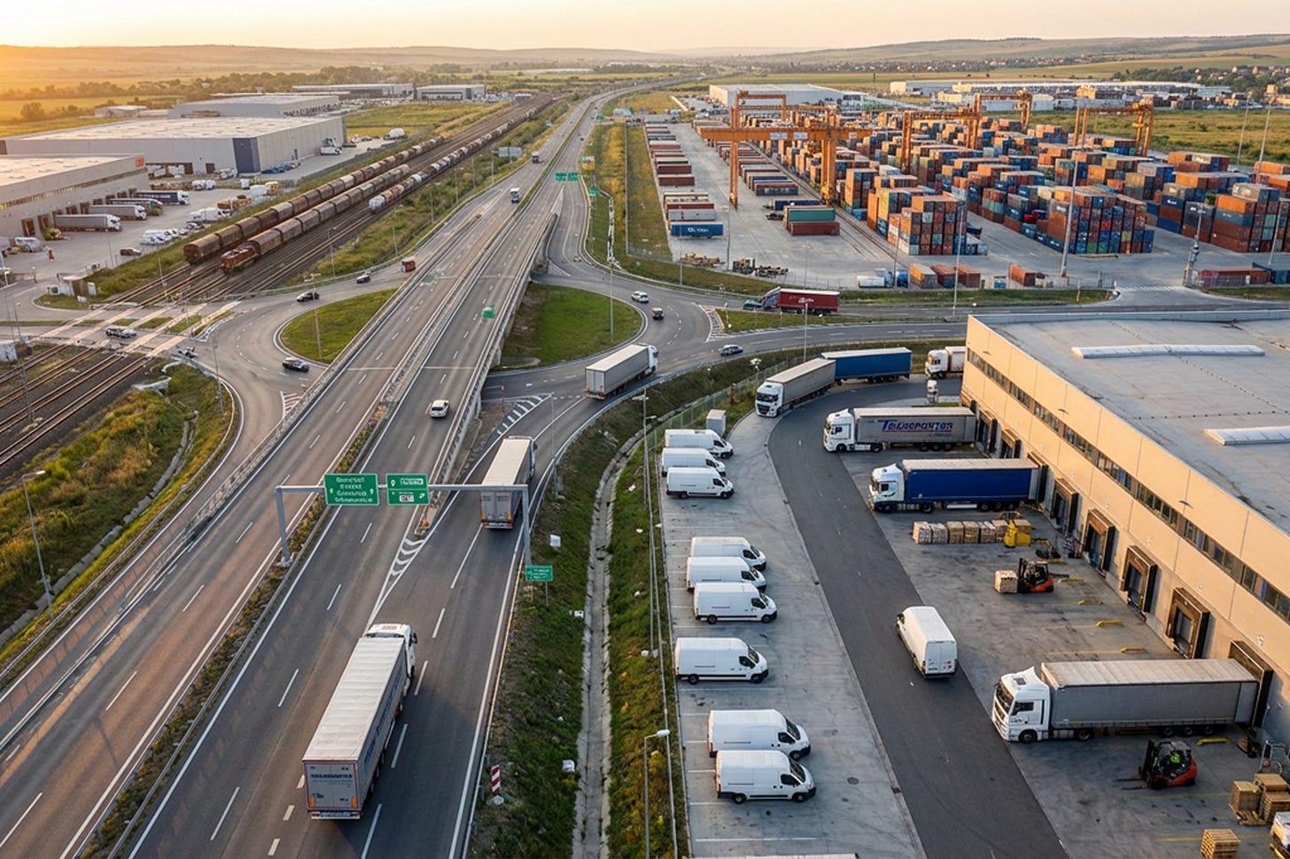 Noduri intermodale (tren–TIR–barcă), logistică pentru marile lanțuri comerciale și pentru transport de containere.